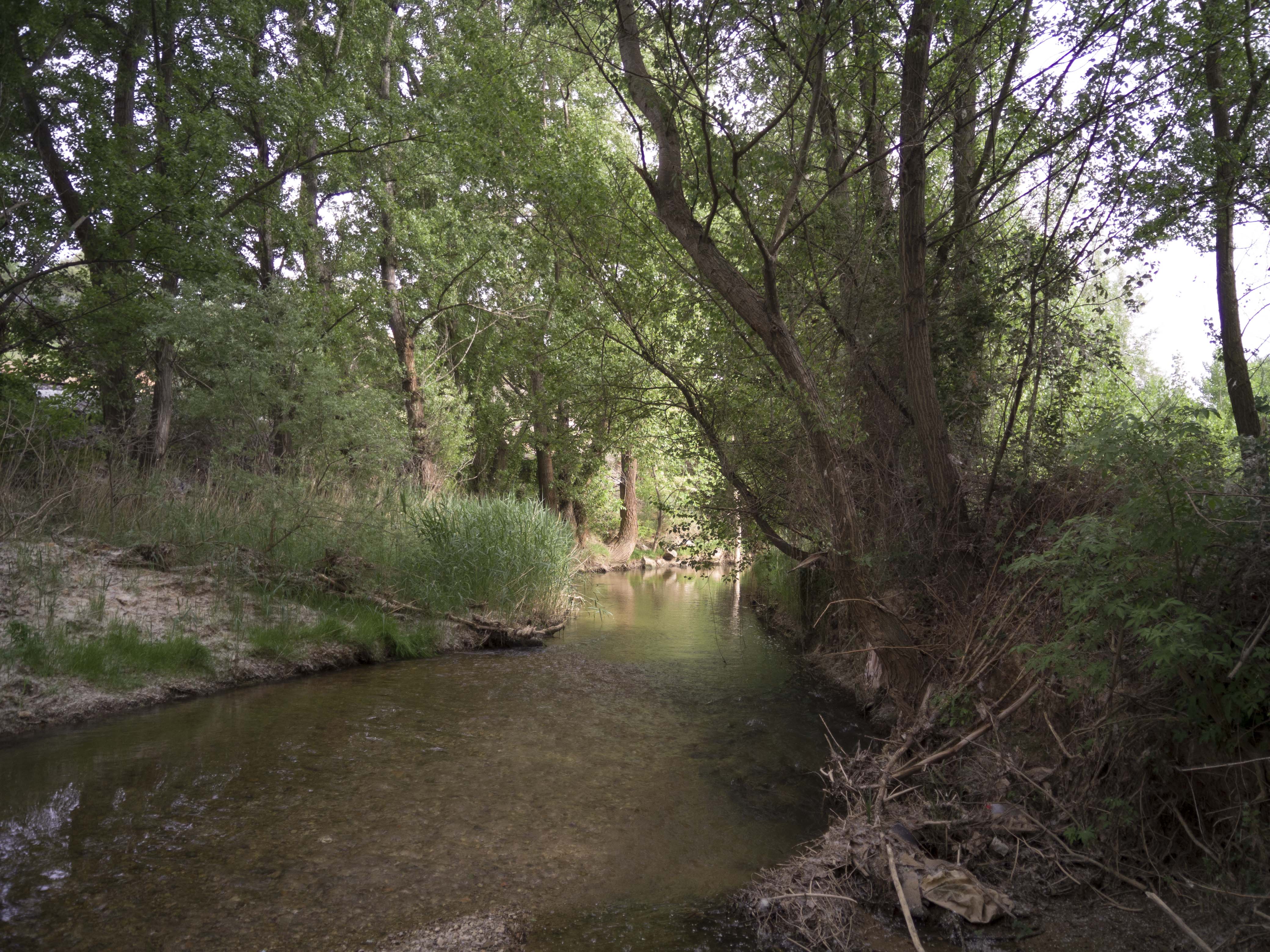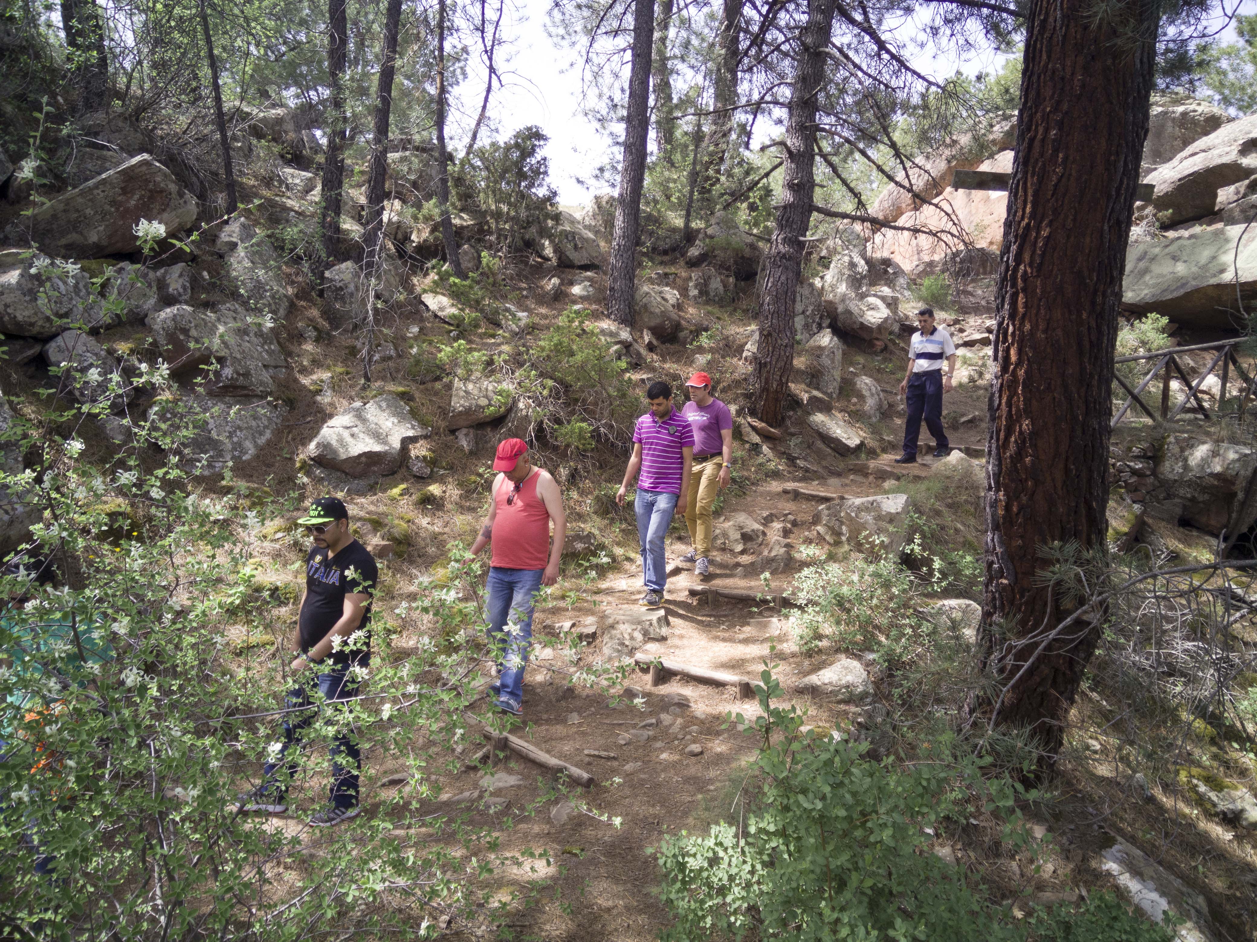 Recorrimos la misma carretera que el conductor había construido en tiempos mozos con los dinamiteros y llegamos a los Altos del Tajo. Aparcamos cerca de la fuente de las casetas, donde miramos la catarata de la presa y dejamos a los más traspuestos y nos dirigimos al camino circular que parte de un puentecito de madera, bordea la laguna de Taravilla y cuando nos acercábamos al final para vadear el tajo, nos acobardamos y decidimos volver sobre los pasos por temor a la corriente de agua. El miedo es mal consejero: la vuelta representó cinco kilómetros extra y agujetas al día siguiente y juramento de no fiarse nunca mas de los guías.