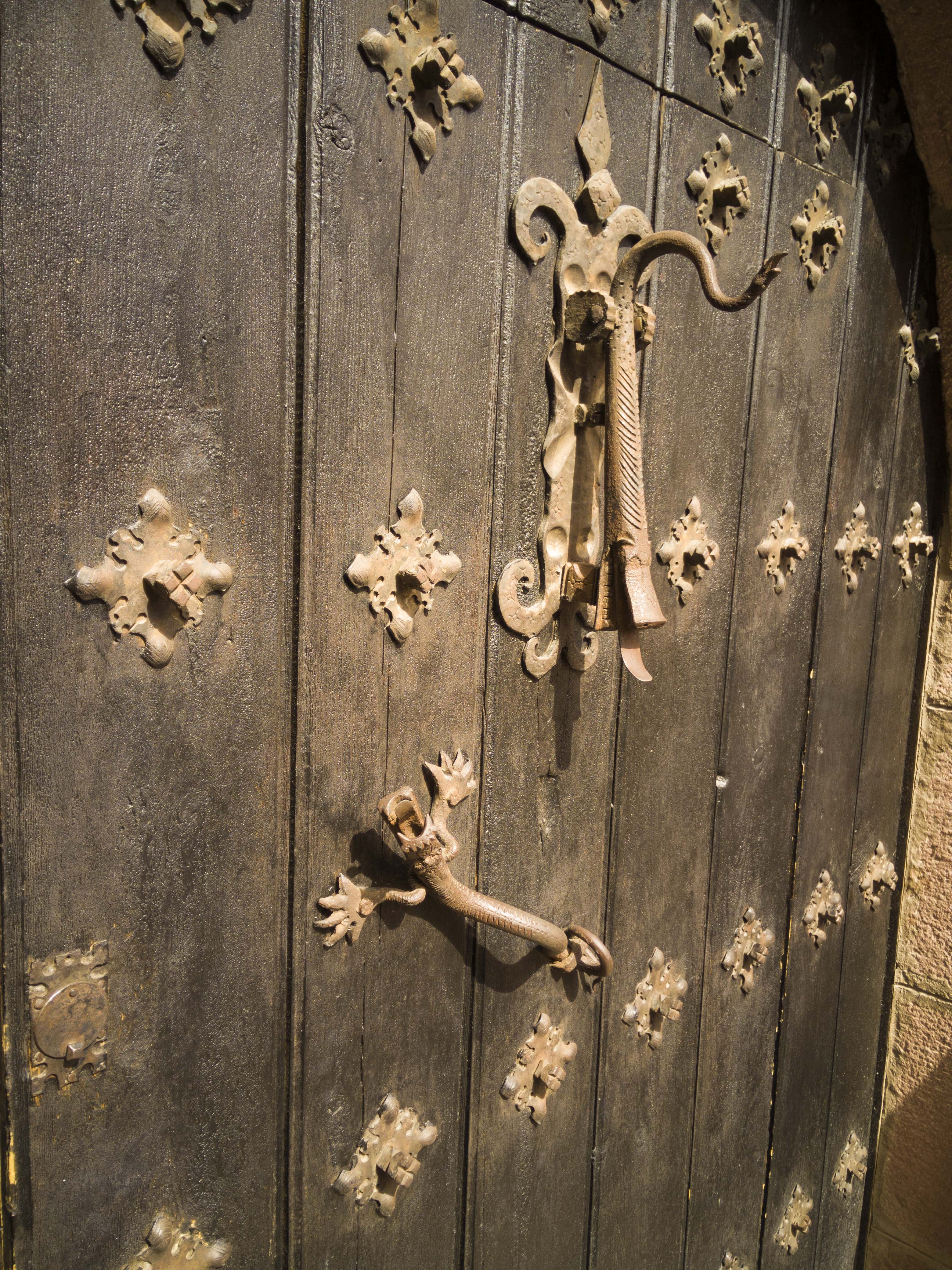 Comemos en un asador de las afueras y luego hacemos una visita guiada al pueblo, donde nos enseñan las puertas claveteadas con aldabas de lagarto, la arquitectura de pirámide inversa truncada, las explicaciones sobre el color rojizo de los encalados, la casa museo, con sus muebles esculpidos con figuras decorativas.
